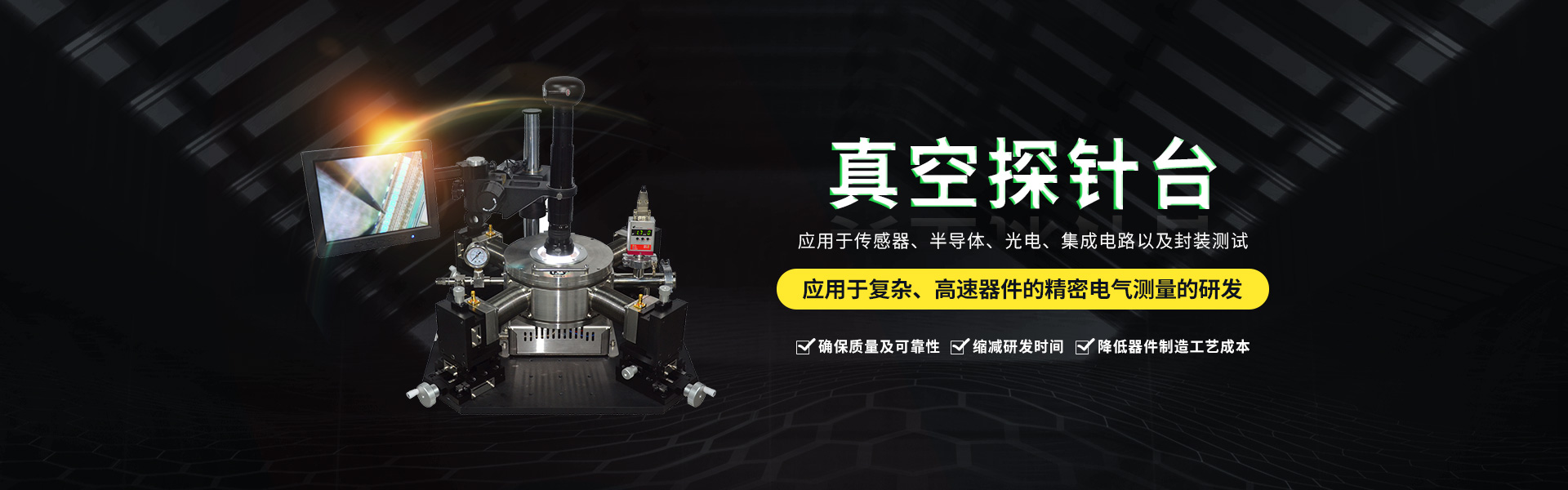 微型真空探針臺設(shè)計有進氣口和抽真空接口其真空度用機械泵可達<5Pa分子泵可達<-3Pa。真空信號連接處使用高級真空電極信號接頭,保證氣密性及抗干擾性能。使用時將需將待檢測的器件方在加熱臺面,探針尖處由...
